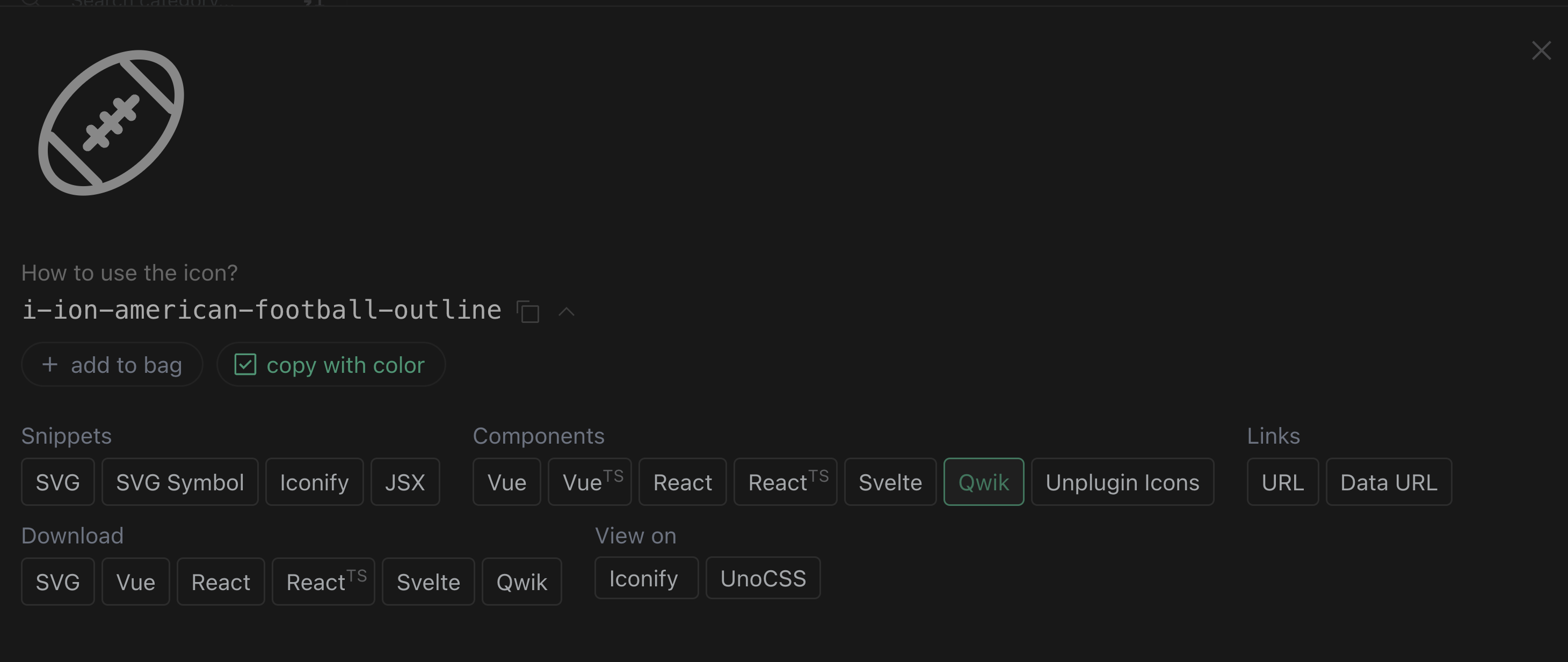 This package allows for a streamlined way to add icons to your Qwik app from a variety of icon sets.